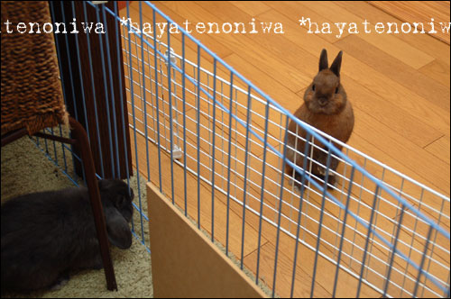抱っこしたいというので次元を膝に乗せてやりましたが、じっとしてるはずもなく、すぐに逃げられてしまいました。抱っこが嫌いなうさぎさんもいることがわかったでしょうか?