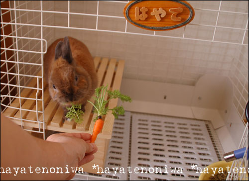 ふたりとも示し合わせたように、お昼に葉っぱの部分を食べ、おやつの時間に残しておいたニンジン部分を食べていました。