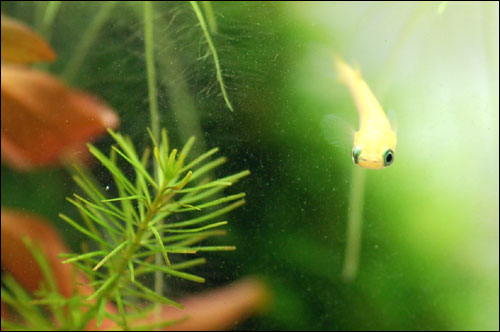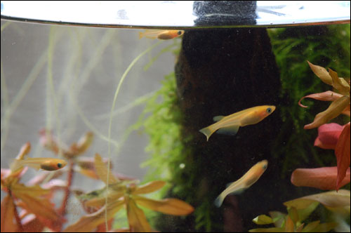 そこで、第一段階として今まで頑張ってきたアカヒレ君に、実家の熱帯魚水槽に引越しをしてもらうことにしました。