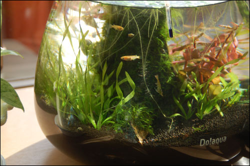一番ダメなのは、手前の丈の短いパールグラス。浮いてくるし、葉っぱもスカスカになってくるし、たぶん根づかないと思います。
