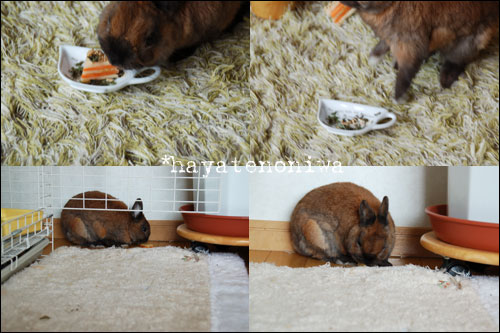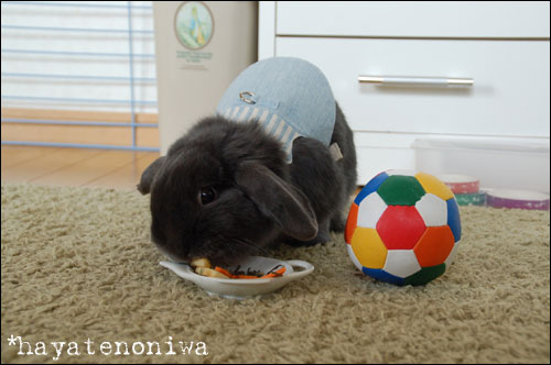 あっという間にケーキをくわえてケージの陰にこもり、ひとりでムシャムシャ食べていました。