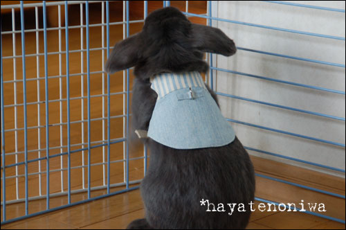 『うさぎと暮らす』NO.27 に載っていたハーネスの作り方を見て作成しました。
