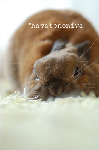 疾風がわたしの横に来てるのに、両手を使ってるとナデナデできなくて、そのうちにケージの前のマットのところで、半目でうさ饅頭になってるのに気づくと、「あっ」って思うんですよね。