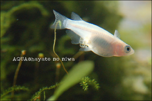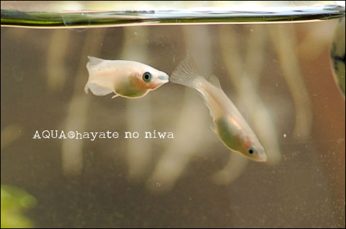 6尾いた白メダカのスノーホワイトのうち2尾を