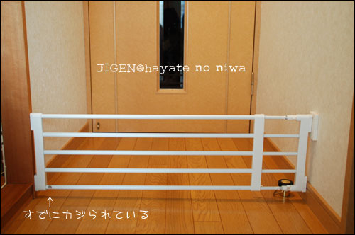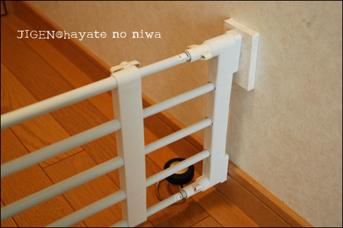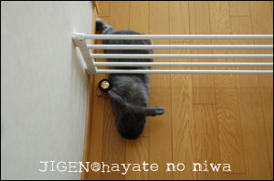 実はうちもこれと似たようなことやったことがありました。鯛子は齧り防止のため、ぼんちーは激しい後追いぼうしのためでした。しかし!鯛子は軽々と飛び越えて向こう側にいまして、ぼんちーはなんと!体当たりして外してしまいました。