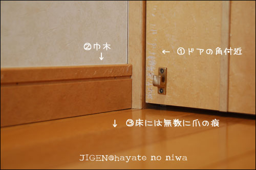 ③画像ではわからないが、床にもホリホリの爪痕が無数に!