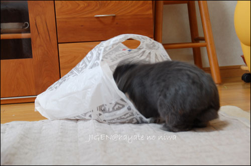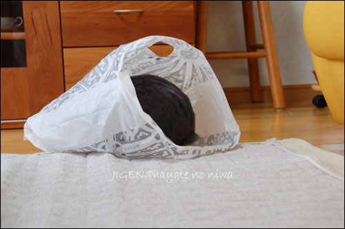 じーくん、上手に袋の中に入ってるね~♪