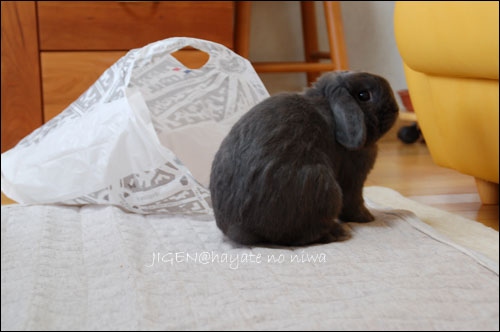 巣穴っぽくて面白いと思うけれど、うさぎさんによって関心があるなしあるようですね。次元も袋や箱は入ったり関心なかったり、反応は様々です。今回はたまたま気になったみたいです。