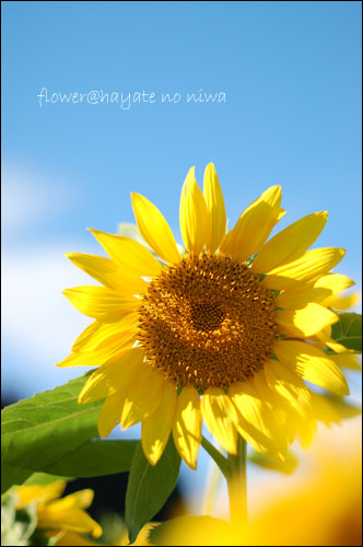 晴れ渡る秋空の下、それでも負けることなくお日様に向かって咲く