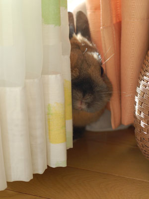 ウチは窓が大きくてね、2mくらいあるのでカーテンが特注なのれす(裁縫は大の苦手なので作れないし)。 それなのにあのバカうさは、隙あらばかじるし、どうやってんのかわかんないけど夜中にケージ内に引っ張り込んだり・・・とほほ。