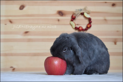 じーくん、リンゴに気づかなかったのでしょうか?転がったリンゴが・・・(笑)リンゴの香りがどこから来るのか、フンフンしなかったのかな?