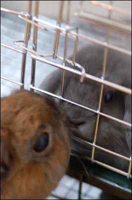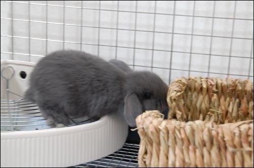 ケージの中ではさっそくお水を飲んだりペレットを食べたり、あっちもこっちも気になるらしく、忙しく動いたあとは丸くなって一休み。