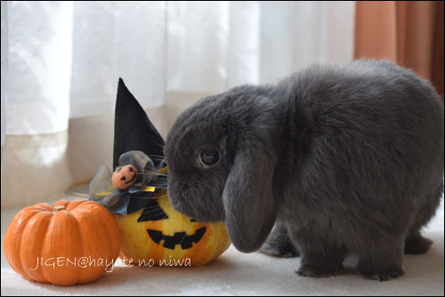 ハロウィンに何かを頭に乗っけられてるうさぎさんは多かったんでしょうね。