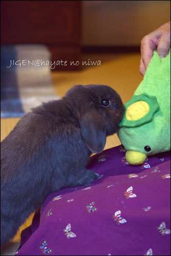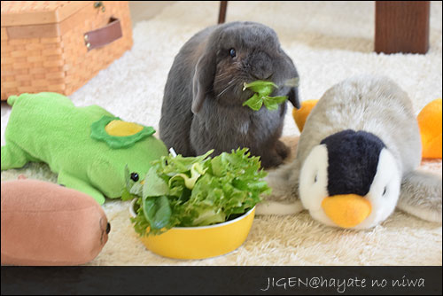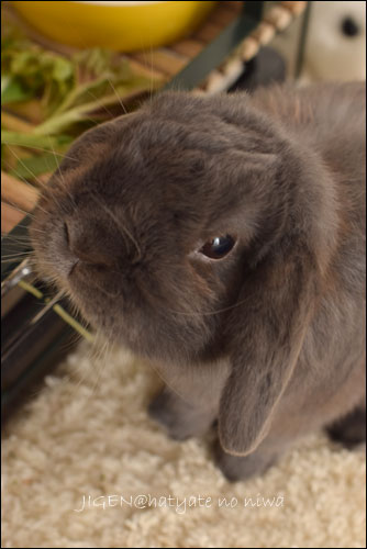 大好きなにんじんはお預けで、手渡しされる葉っぱを仕方なく食べてる次元。