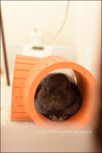 ものすごく珍しいことに、土管の中に半身入ってくつろいでいました。