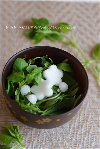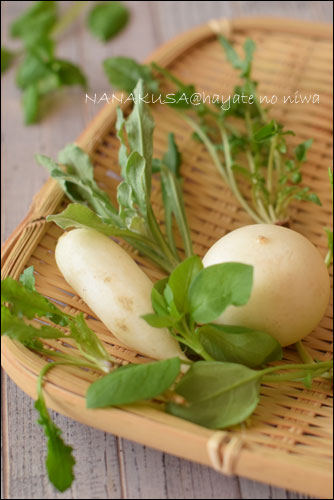 写真の先生の真似っこして、七草をカゴに並べて撮りました。
