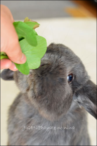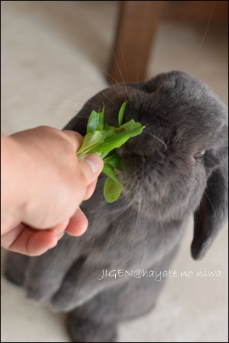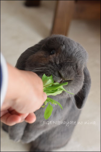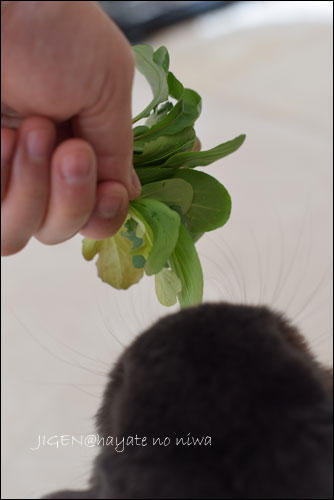 ベランダで収穫した野菜をこうして時々おやつとしてあげています。