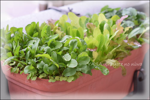 ベランダのプランターで、ルッコラとガーデンレタスと