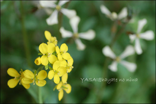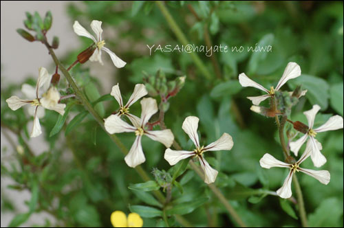 ルッコラとチンゲンサイの花が咲いて、賑やかな雰囲気になりました。